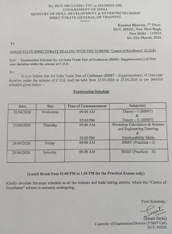 Programme of SCVT Trade Test to be held in April 2026 Click Here